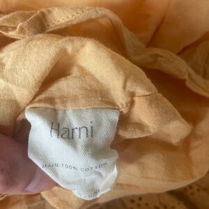 Fall in love with this dreamy $230 Harni midi dress in a warm, golden-peach hue. Made from 100% cotton with intricate eyelet embroidery, scalloped hem, and a flattering tiered skirt, it’s the perfect blend of romantic and boho. Features puff sleeves and a stunning open-back detail with dual tie closures for a flattering, adjustable fit.