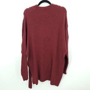 Free People Harper Knit Split Side Tunic Sweater XL Pretty Berry (Red)