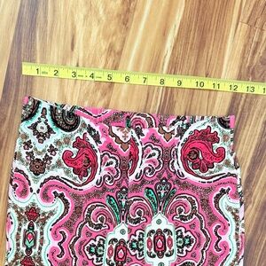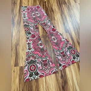 Embrace an energetic vibe with this amazing Free People pull on ants, featuring a captivating pink and green paisley design. Perfect for a day at the outdoor markets, a concert or festivals. Their comfortable fit and stylish pattern make them a standout piece in any wardrobe.