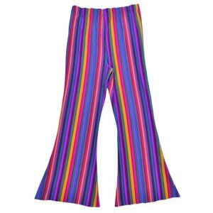 Free People Harper Striped Rainbow Pull On Pants Spring Jewels Flared High Rise