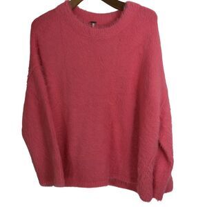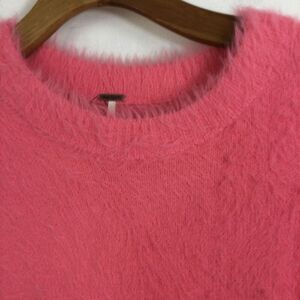 Free People Harrison Bunny Crew Fuzzy Oversized Sweater Strawberry Pink S NWT