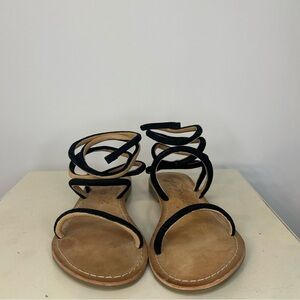 Free People Havana Gladiator Ankle Wrap Suede Sandals in Black, Size 37 (6.5-7).