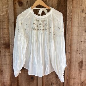 Free People Have It My Way Embroidered Top in Ivory-Bohemian Hippy Blouse