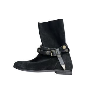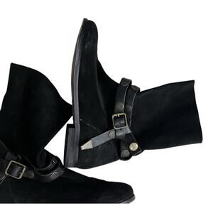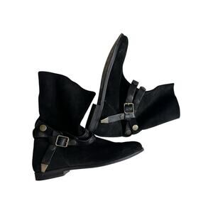 Free People Hayden Suede Pull On Ankle Boots Black Buckle