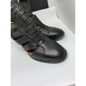 Free People Hayes Boot Black Cutout Stacked Heels Soft Leather Size 7.5