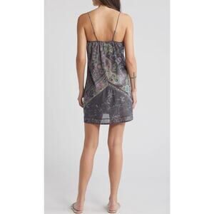 Free People Hayes Mini Slipdress in Size Large. Gray with Floral Paisley Print.