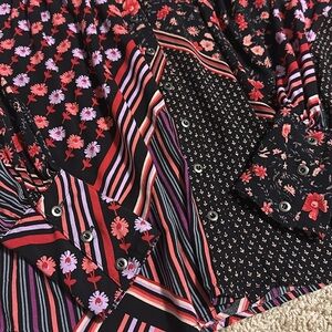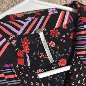 Free People Hazel Button Down Tunic Top Womens XS Black combo Floral Stripe Boho. Excellent condition