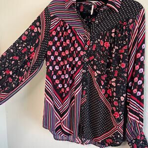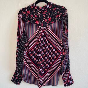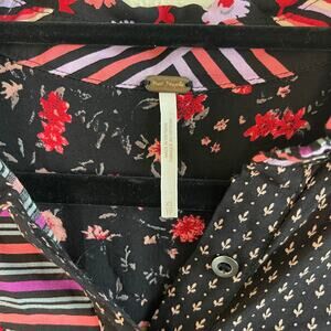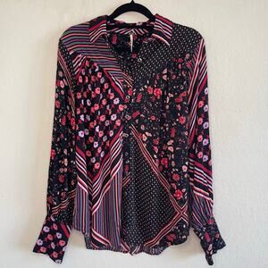 Free People Hazel Buttondown in Black Combo Women’s Top Blouse - Size XS