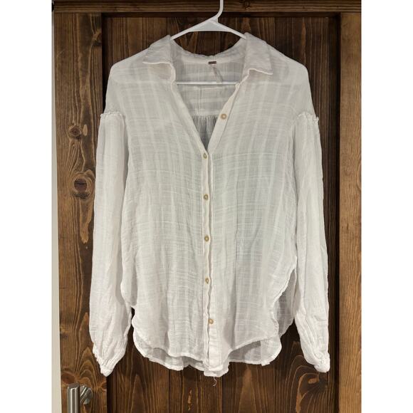 The softest most light and airy ouse ever! Feels like a light linen, but is actually a cotton weave. Ruffle details at shoulder and balloon sleeves. Button down. White. Size Large.