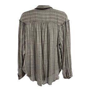 Free People Headed to the Highlands Button‎ Up Gray Black Gauze Style Top Size S