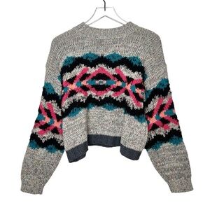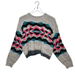 Free People Heart You Gray Wool Blend XOXO Women’s Chunky Cropped Sweater Sz S