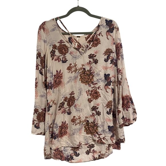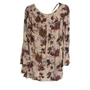 This Free People Heartbeat Floral Tunic features elegant bell sleeves and stylish crisscross straps in front. With a flattering medium size fit, it offers a perfect blend of comfort and fashion. Ideal for casual outings or special occasions. Good condition, with detailed measurements in the pictures.