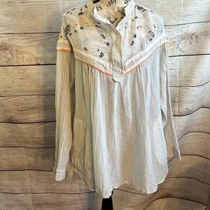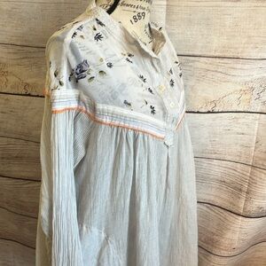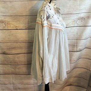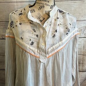 Free People Hearts & Colors Top Boho Oversized Sheer Yoke Floral Accents Cotton