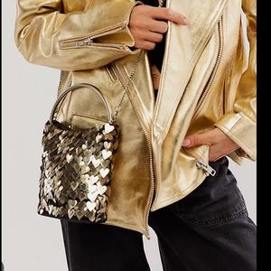Free People Hearts On Fire Clutch Bag Metal NWT