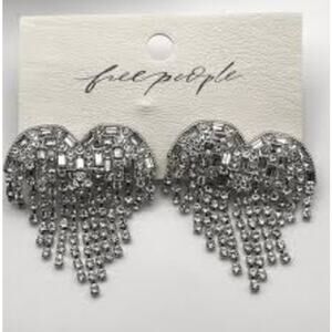 Free People Hearts On Fire Dangle Earrings Rhinestone Heart Fringe Statement NWT