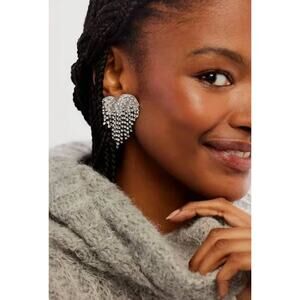 Turn up the sparkle with the Hearts On Fire Dangle Earrings by Free People. These stunning rhinestone-encrusted earrings feature a bold heart silhouette and cascading crystal fringe for a showstopping look. Perfect for date night, concerts, special occasions, or dressing up a casual outfit. New with tags (NWT).