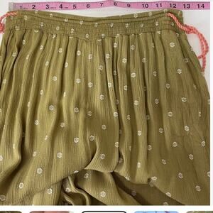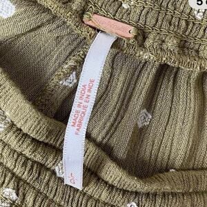 Add effortless bohemian flair to your wardrobe with these Free People Hearts Rising Pants in moss green. These wide-leg beauties feature intricate embroidery, a comfortable elastic waistband, and boho-inspired tassel ties. The relaxed fit and lightweight fabric make them perfect for warm weather or laid-back days.