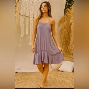 Free People Heat Wave Pastel Purple Embroidered Trapeze Slip Dress SZ S