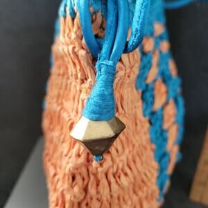 The Free People Heatwave Woven Raffia Mini Crossbody Bag in Tropical is a stylish and lightweight handbag perfect for a beachy or bohemian look. Made from woven raffia with a drawstring closure, this mini bag features a blue crossbody strap and gold hardware accents. The tropical theme and colorful exterior make it a vibrant accessory for any outfit, while the lined interior with inner pockets offers functionality and organization. Perfect for carrying essentials in a trendy and effortless way.