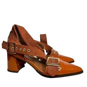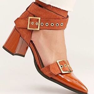 Free People Heel Top Down Russet Brown Patent leather block heel Pointed Toe