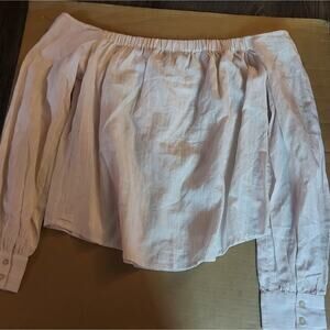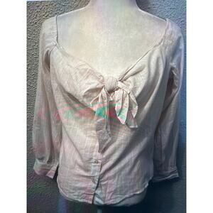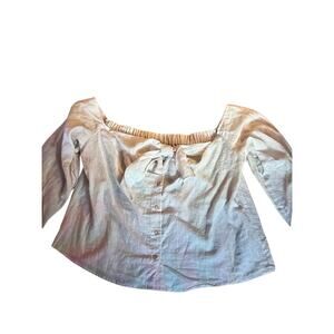 Free People Hello Beautiful Off Shoulder Woven Knit Top Tie Front S NEW Nautical