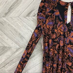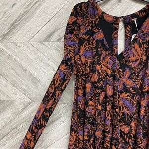 A tunic styled dress with a flowy high/low hem that is detailed with a colorful floral print and stylish ruched long sleeves.
