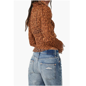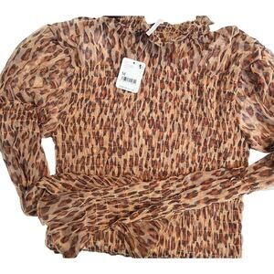 Free People Hello There Smocked Crop Top Leopard Size M Long Sleeve NWT