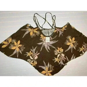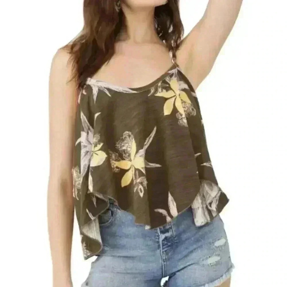 Free People Hey Girl Cotton Strappy Tank Top Floral Army Combo Small NEW.