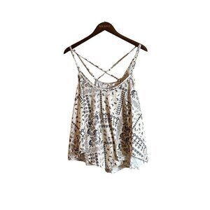 Free People Hey Girl Cotton Tank Top Ivory Navy Tea Combo Bandana Size Med NWT