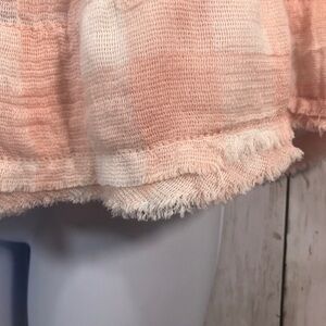 Pale pink and white checkered,, raw hem, over sized, sleeveless, hidden button, tag is missing so PLEASE SEE MEASUREMENTS, lightweight, soft, gauze like material, colors may vary due to lighting, good used condition, Sz: XS/S ?