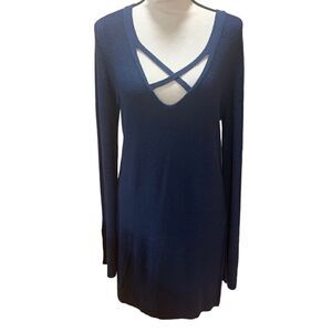 Free People Hi-Lo Sweater Dress Split Bell Sleeves Split Hem Crossed V-Neck Lrg in Excellent Pre-Loved Condition