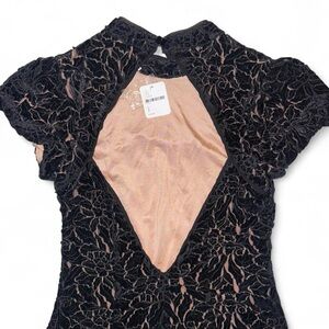 Free People Hide & Seek Black Velvety Mini Dress Whimsygoth Women’s Size 2 NWT