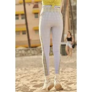 Free People High-Rise Ankle Sheer Luck Leggings. Size XS / Extra Small. Features high-rise, V-waistband with mesh pocket, contrast print side stripes, side slip pockets, and pull-on. Style 65049827. 80% Polyester, 20% Elastane. Sides: 78% Nylon, 22% Elastane. Excellent condition, no flaws.