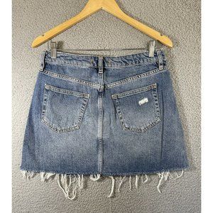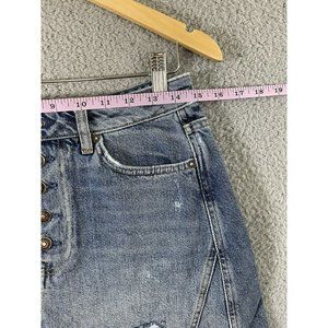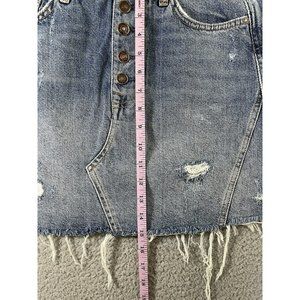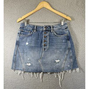 Free People High Rise Button Fly Denim Distressed Mini Jean Skirt Size 29