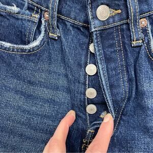 Free People High Rise Button Fly Skinny Jeans Raw Hem Womens 24 Blue Denim