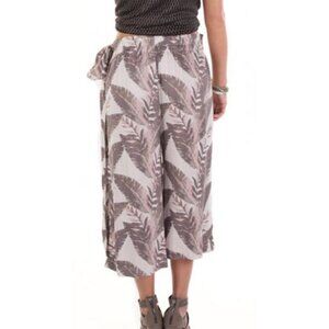 Free People High Rise Culottes Ivory Combo Leaf Print Wide Leg XS $98 Boho Chic