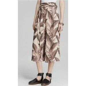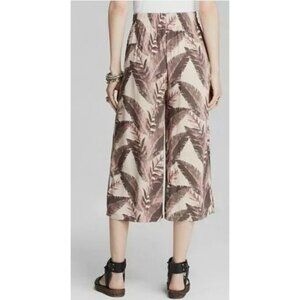 Free People High Rise Culottes Ivory Combo Leaf Print Wide Leg XS $98 Boho Chic