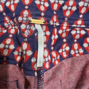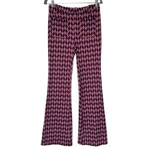 {Free People} High Rise Geometric Mod Retro Print Blue Red Pink Flare Leg Pants