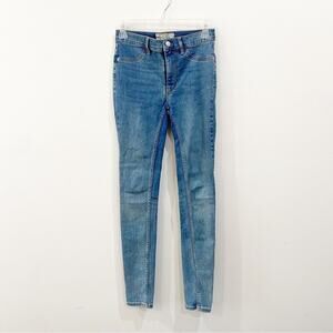 The Free People Long and Lean High-Waisted Light Wash Denim Jeggings fit like a second skin! Lightly faded, light wash denim shapes these must-have high-rise jeggings with belt loops, decorative front pockets, back patch pockets, branded top button and zip fly. Tapered, ankle-length pant legs create the perfect silhouette!