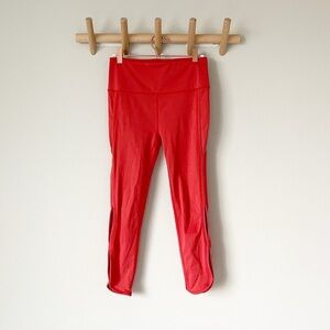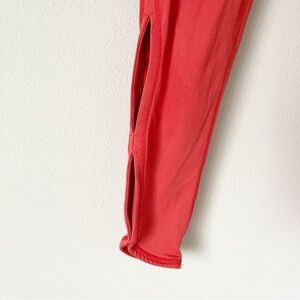 In good condition with no visible flaws. Orange color with cut out son the legs. High rise fit.