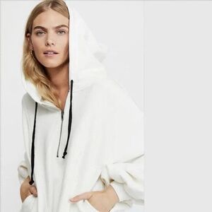 Free People High Road Pullover Sweatshirt Hoodie White Drawstring Large Boho