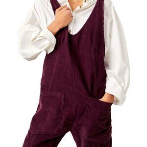 It doesn't take much for this one piece to look effortlessly cool. Add some statement jewelry to dress it up, or throw on some sneakers for a more casual vibe. Experience the effortless style of the High Roller Cord Jumpsuit by Free People in an elegant Italian Plum, perfect for a casual day out. Crafted from textured cotton, this relaxed-fit piece features a pull-on style with adjustable shoulder straps and a low scoop neckline. The jumpsuit's harem-style legs offer a comfortable, slouchy fit, accentuated by oversized patch pockets.