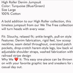 Free People High Roller Denim Jumpsuit Size XL NWT