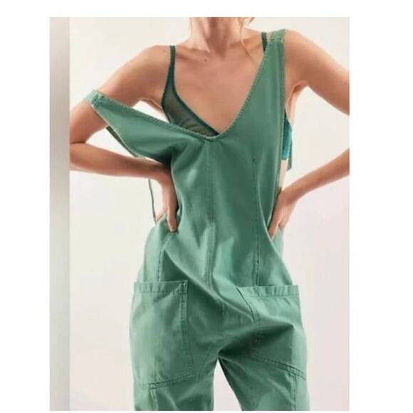 Free People High Roller Jumpsuit Green Overalls size XL