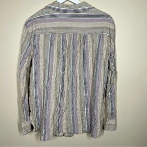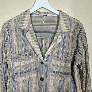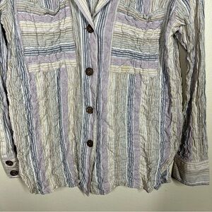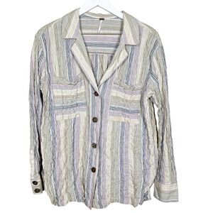 Free People High Tide Multi Stripe Button Crinkled Front Long Sleeve Shirt Womens size medium Preowned. Good condition. Cotton and spandex blend. Lagenlook Laying flat Pit to pit 23” Length shoulder to hem 28”