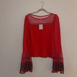 Free People High Tides Top Vibrant Orange Blouse with Bell Sleeves