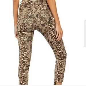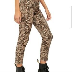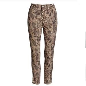 Striking snakeskin print makes an impression on these high-waist skinnies punctuated with raw hems.