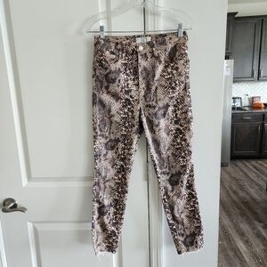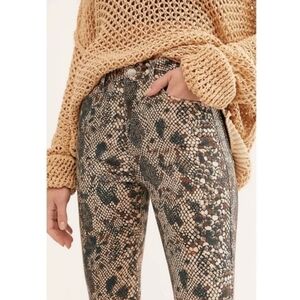 Free People High Waist Snakeskin Denim Jeans. Women's size 30. Preowned in good condition. The look of jeans with the feel of leggings make this pair from Free People an essential, while the raw hem and high-rise fit complete the look.