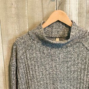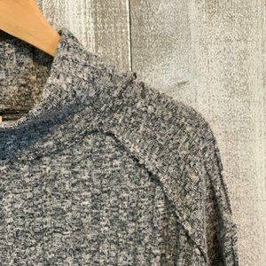 High-Low Hem, long sleeve knit top from Free People. Layered look at the bottom of raw hem. Loose mock-neck style. Lightweight. Size XS. Pre-loved, in great condition.