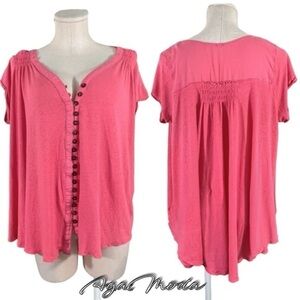 Free People Highland Oversized Cotton Button Down Top In Pink